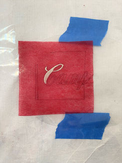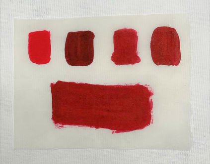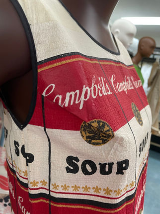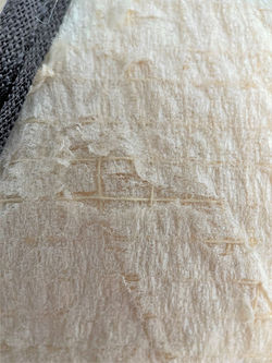 The tears and areas of loss to the paper of the dress at the bust darts and shoulders required adhesive stabilization. I made overlays of very fine paper toned to the required red or cream/yellow, and painted it with Jacquard Textile Paints to imitate and overlap the original print. The overlays were adhered with Lascaux Acrylic Adhesive effectively stabilizing those areas.